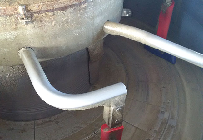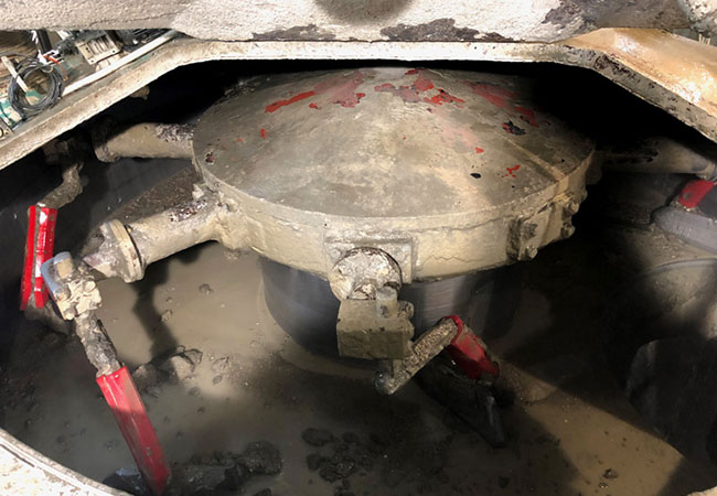 Ez egy "Easy Cleaner" nagynyomású keverő tisztítórendszer (3 tisztítófejjel), amelyet gyárunkban egy Pemat 2 m3-es keverőben használunk örvénykeverővel. A keverőtisztító