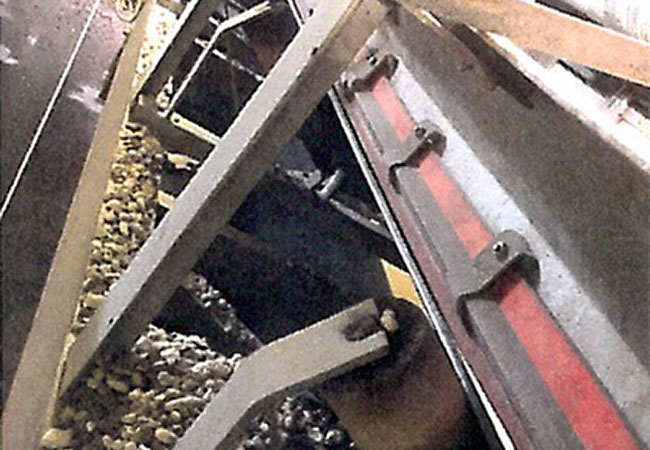 Mivel az aggregátumokat előzetesen nem vezették megfelelően a mérőszalagra, szennyeződések keletkeztek, amint az a következő képeken látható, valamint közvetlenül a mérőszalag alatt a padlón. Ezt hetente egyszer el kellett távolítaniuk az alkalmazottainknak.