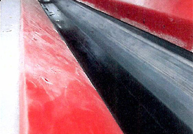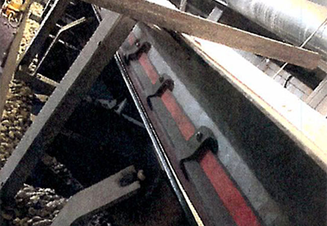 Mivel a PUCEST Anyagterelő lemezt már más transzportbetongyárakban is nagy megelégedettséggel alkalmazták, úgy döntöttünk, hogy ismét a PUCEST Anyagterelő lemezt használjuk. Ez a felső részen az oldalsó vezetőlemezekhez van csavarozva a beöntött perforált acéllemez miatt. Az alulra erősítés nélkül rögzített kötény lezárja a szalagot, hogy a szállítandó anyag egyenletesen oszoljon el, és ne szökjön ki az oldalakon keresztül. A szennyeződéseket csak havonta egyszer kell tisztítani.