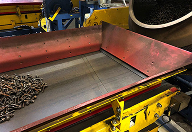 A csigabevonó üzemünkben, amelynek napi teljesítménye kb. 90 t, a múltban problémáink voltak a rezgőcsatornák bevonásával (lásd az előző képet). Mivel a rezgőcsatorna bevonatán lyukak voltak, a csavarok beragadtak. Ez keveredéshez vezethet, ami nagyon nagy problémákat okozhat az autóiparban.