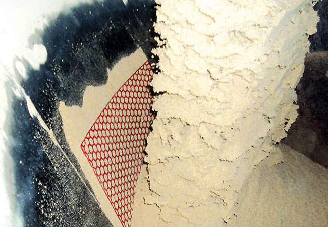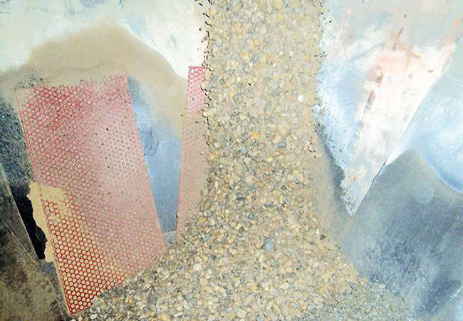 A lemezre érkező anyag egy része összegyűlik a kamrákban, és így pufferfunkciót tölt be. Ez jelentősen lelassítja a kopás hatását. A terelőlemez másik előnye a rugalmassága. A durva szemcséjű anyag (pl. kavics) nem törik össze ütközéskor.