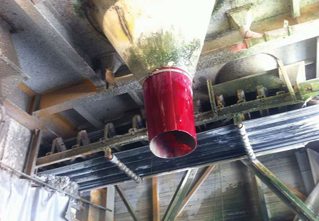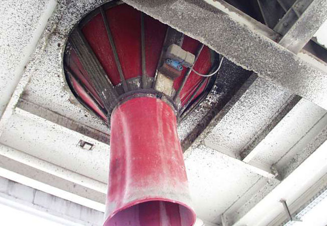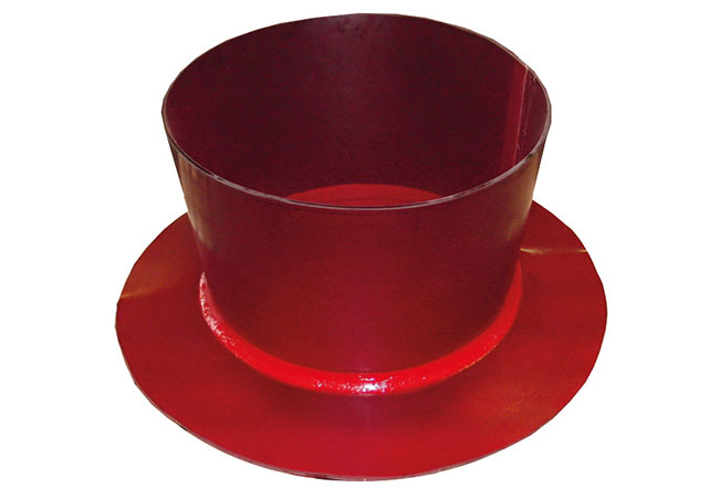 Egy PUCEST ürítőtömlő gallérral. A szállító keverő betöltésekor a gallér fröccsenésvédőként szolgál