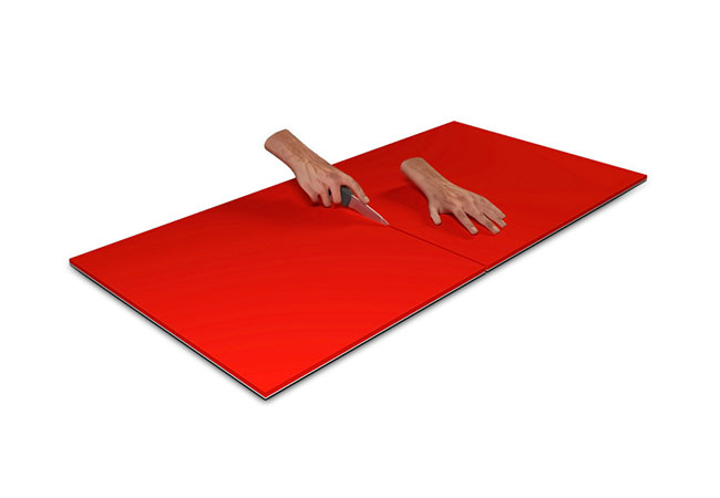 1. Ha szükséges, vágja rugalmasan méretre a vágókéssel, és távolítsa el a védőfóliát.