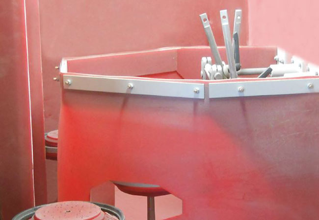 Teljes felületi ragasztás kopásálló PUCEST lemezekkel homokfúvó rendszerekhez és ömlesztett anyagok szállítószalagjaihoz