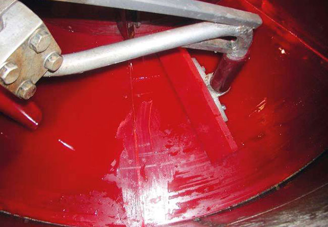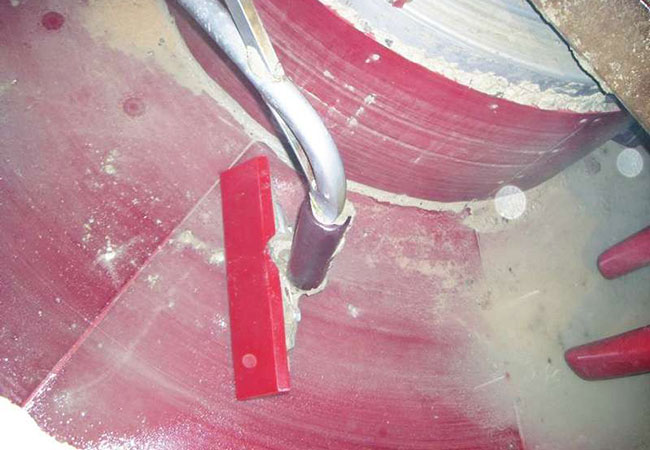 Még 30 000m³ után is szinte semmilyen kopás jele nem látható. Itt még bazalttörmeléket is használtak adalékanyagként.